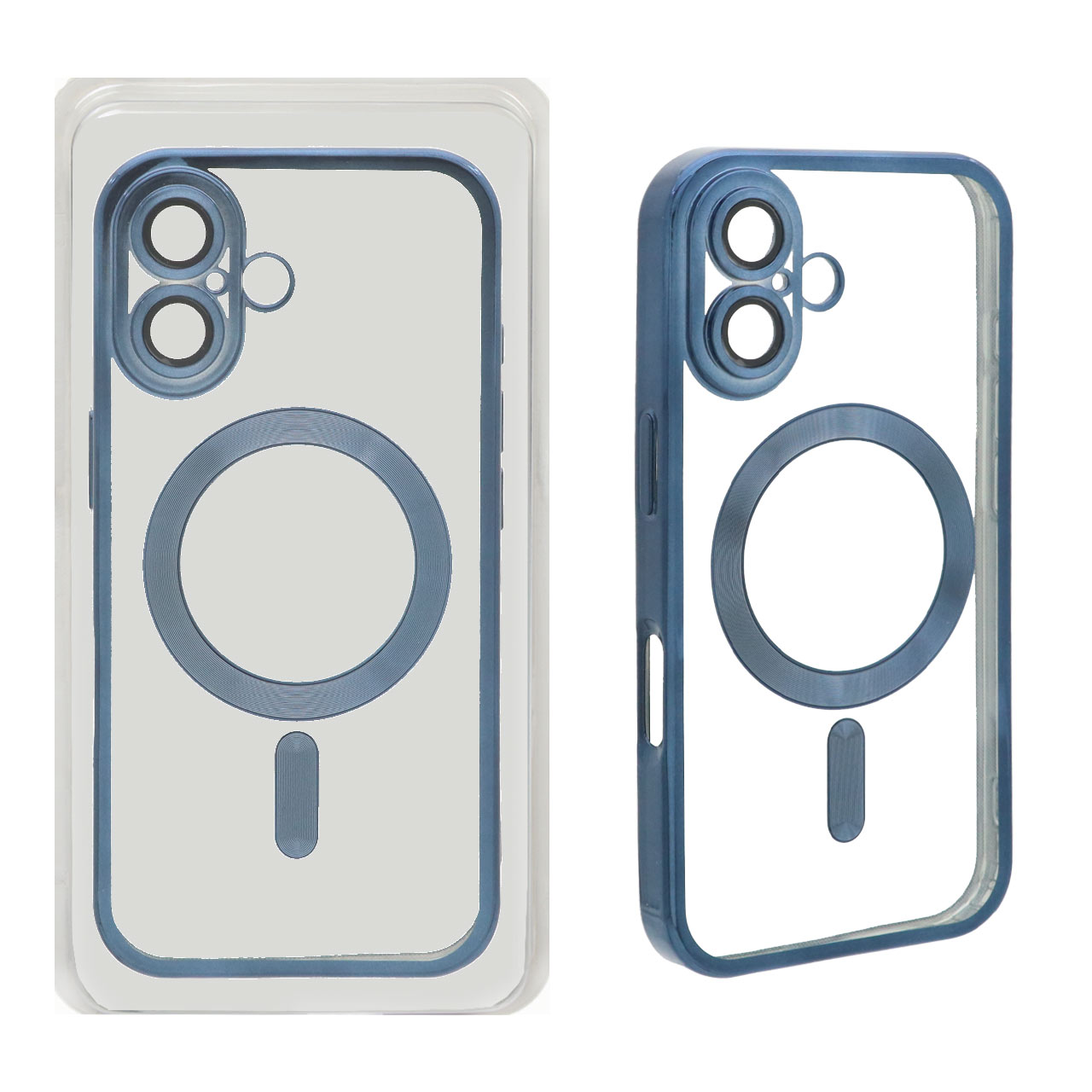 قاب مگنتی مخصوص ایفون 16 با طراحی شفاف و فریم فلزی نما،سازگار با شارژرهای MagSafe .محافظت کامل از بدنه و لنز،سبک،مقاوم وزیبا برای استفاده روز مره.